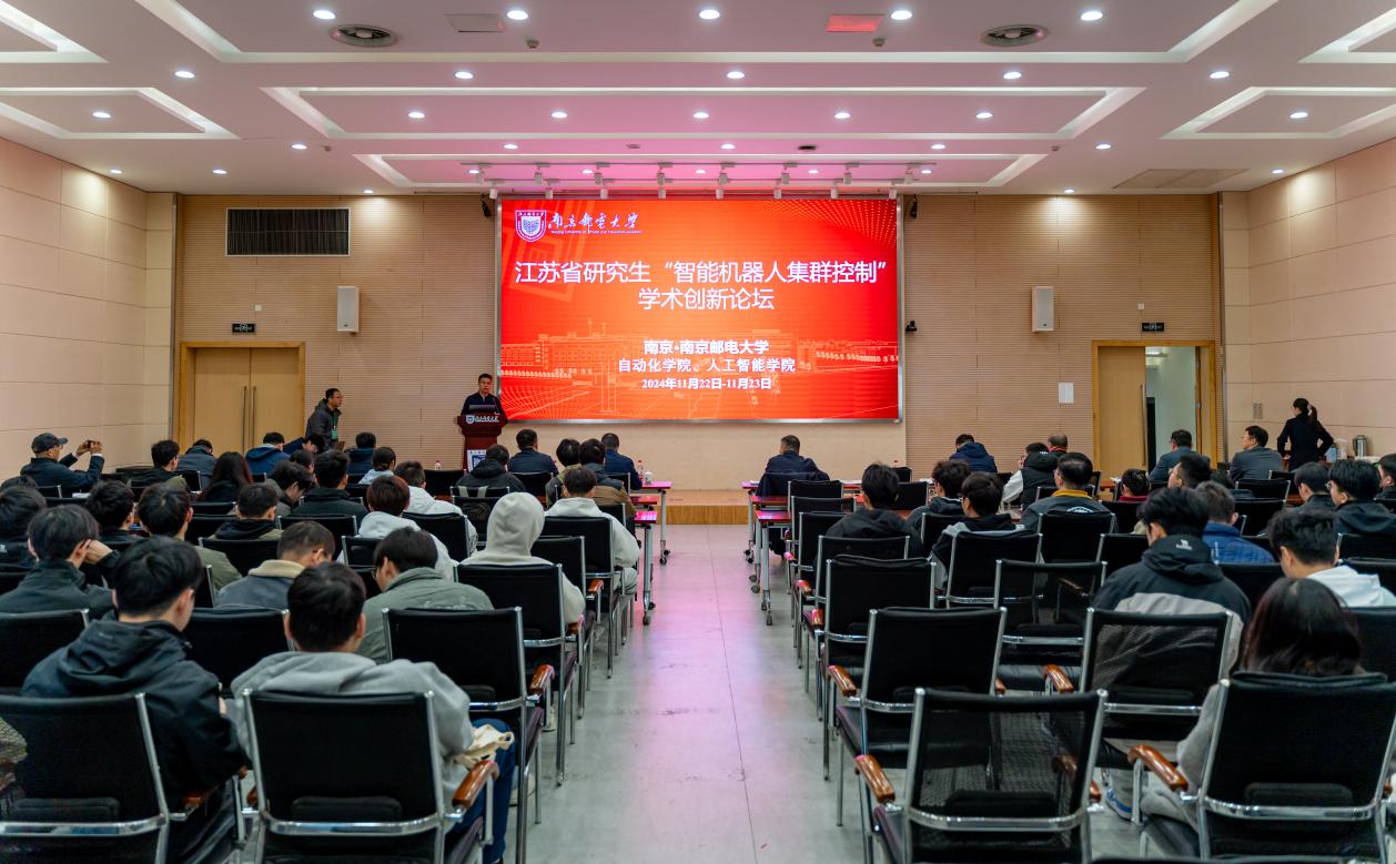11月22至24日,2024年江苏省研究生“智能机器人集群控制”学术创新论坛在我校成功举办。此次论坛由江苏省工学2类研究生教育指导委员会主办,南京邮电大学研究生院、自动化学院、人工智能学院、江苏省物联网智能机器人工程研究中心、具身智能与装备控制江苏省高校重点实验室等承办。来自国内高校及科研院所的专家学者及180余名研究生参加本次论坛。