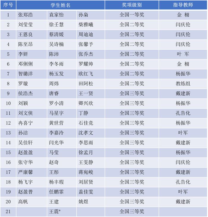 获奖学生名单(*号表示该生与其他高校学生联合组队参赛)