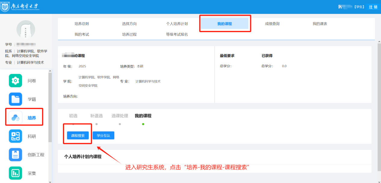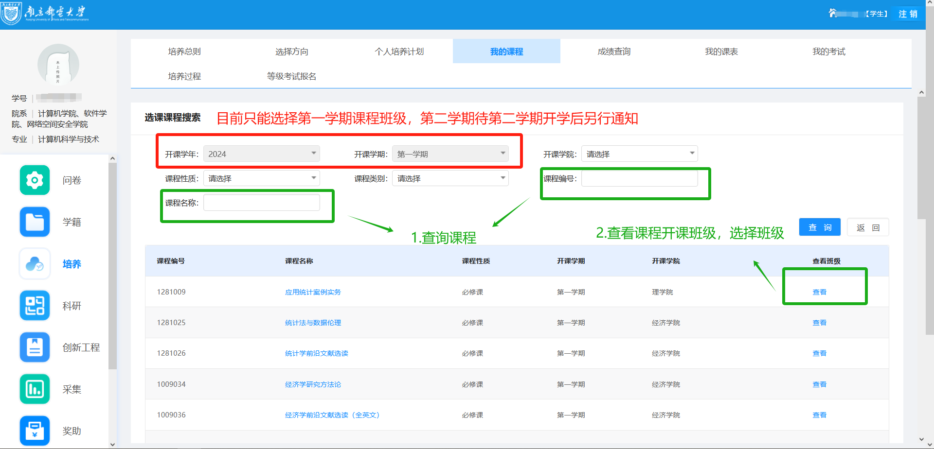 1、以课程号为查询标识,参考2025级研究生培养方案(详见附件1)选择班级。直博生需要参考直博生的方案,硕博连读先修硕士生的方案。