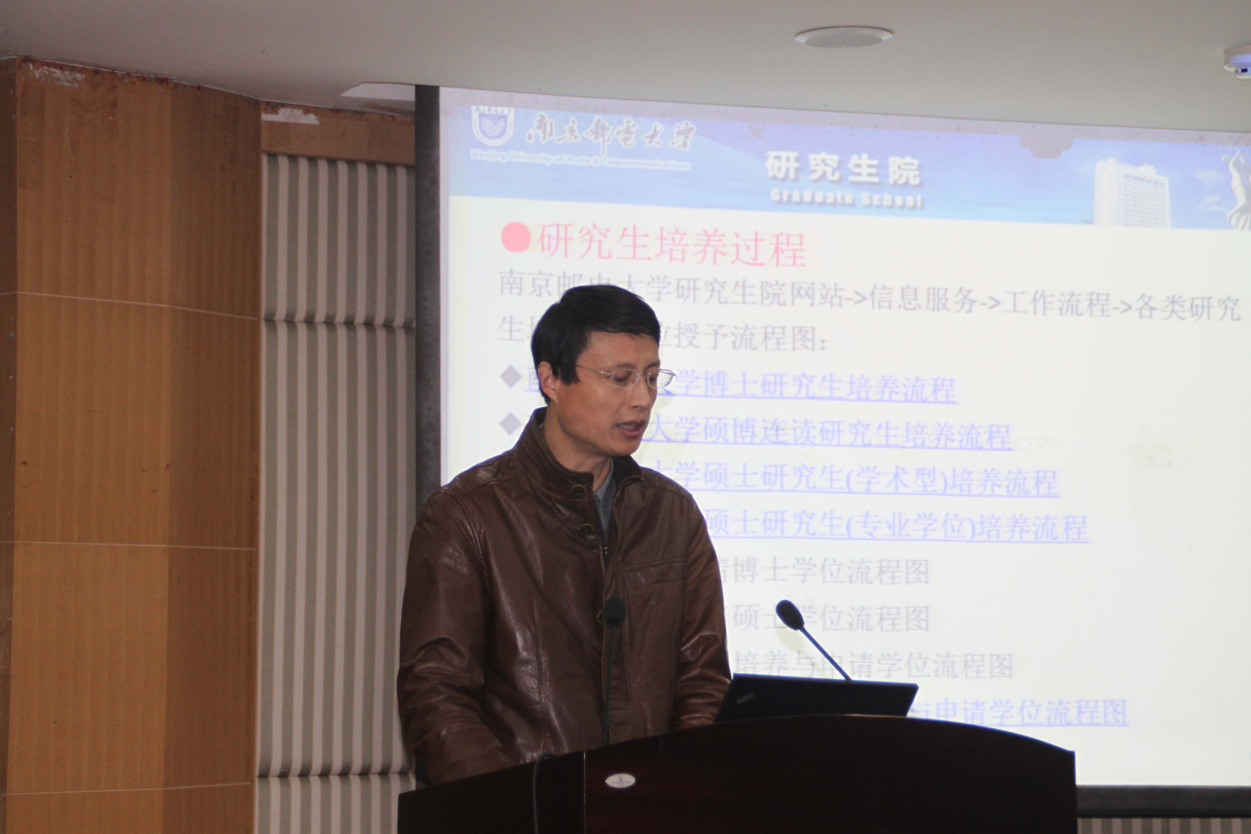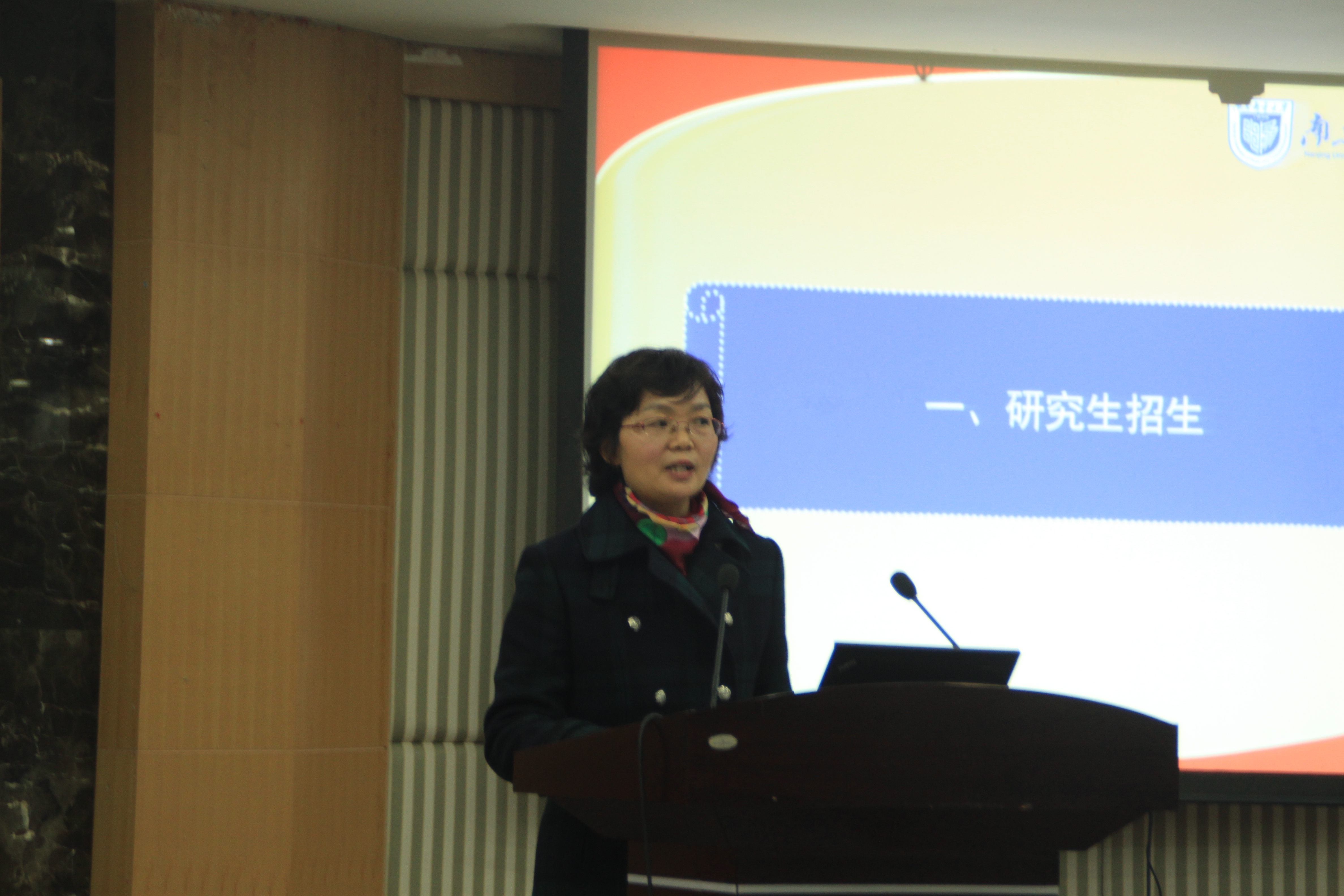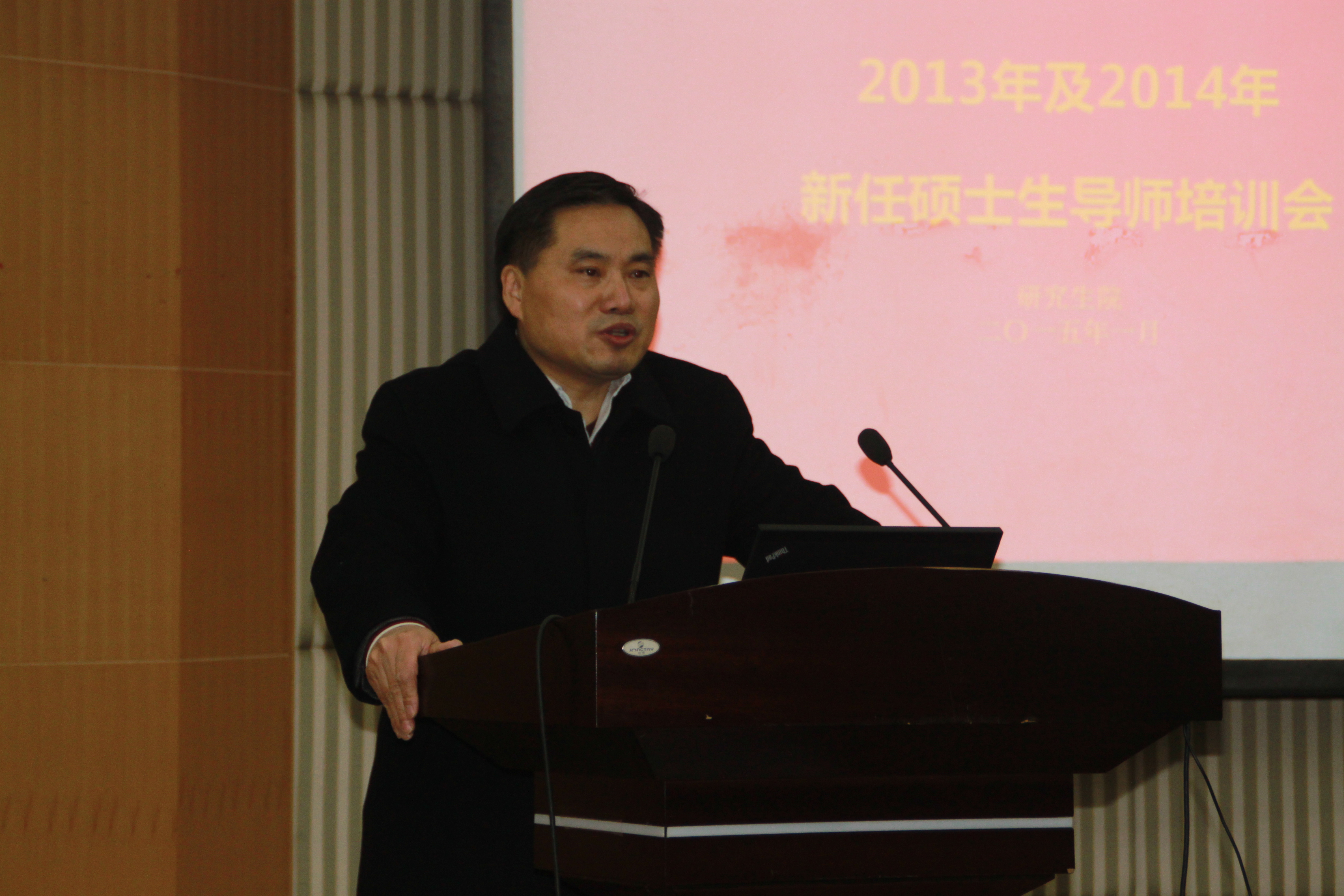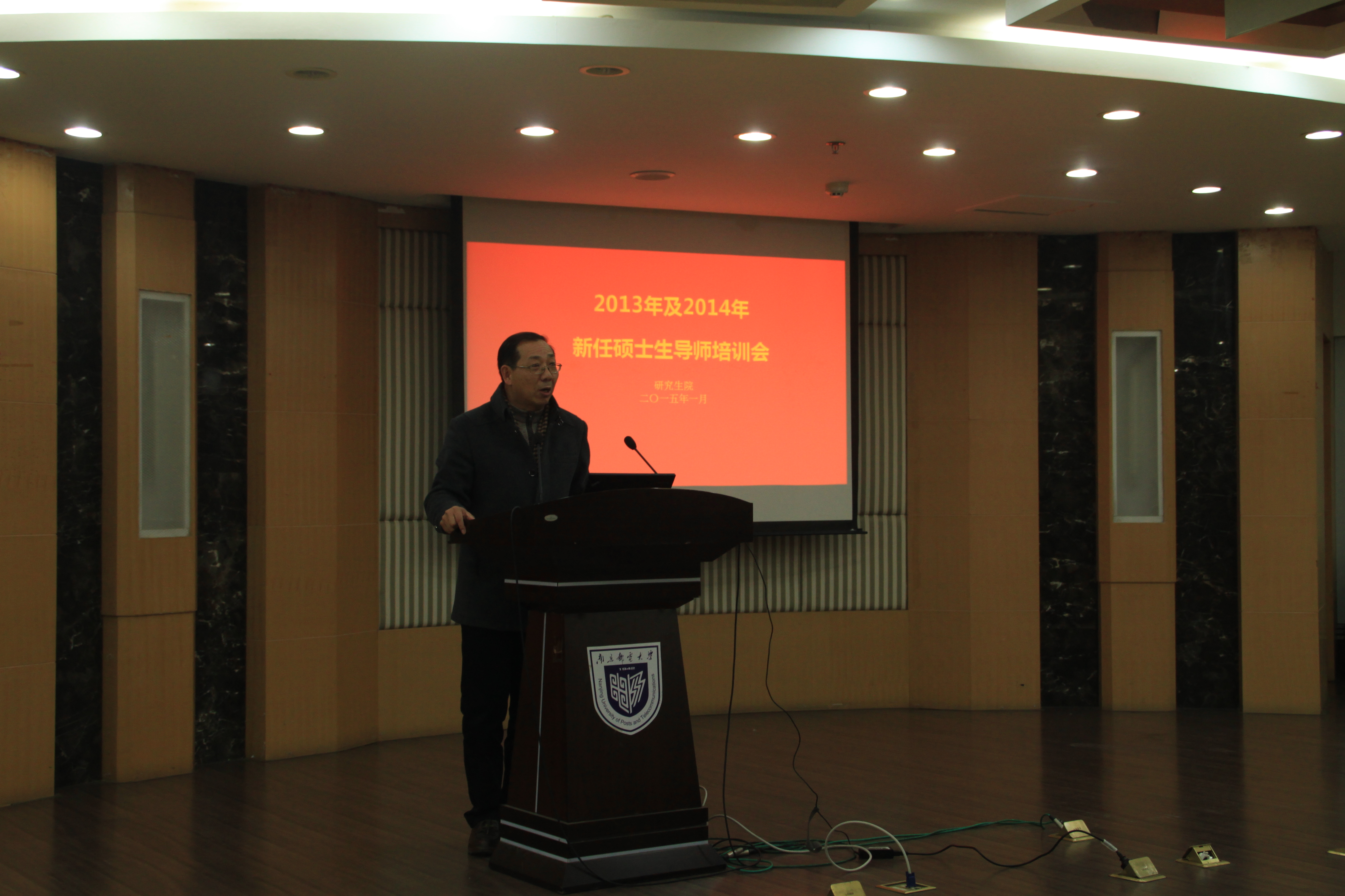 为进一步加强我校研究生指导教师队伍建设,规范学位与研究生教育管理,提高研究生培养质量,1月13日下午研究生院在三牌楼校区科学会堂演讲厅举办了新任硕士研究生导师培训会。近两年新任研究生导师及研究生教育秘书百余人参加了此次培训会。副校长兼研究生院院长蒋国平教授出席会议并讲话,培训会由研究生院常务副院长杨庚教授主持。