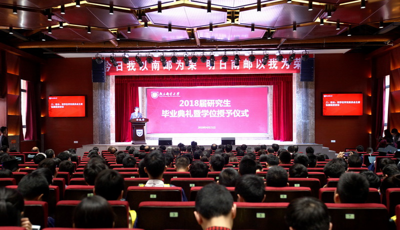 四月的南邮,桃李芬芳,花团锦簇,欢声笑语,这是校庆76周年喜庆的季节,也是毕业研究生收获的季节。4月21日上午,我校2018届研究生毕业典礼暨学位授予仪式在三牌楼校区华礼堂隆重举行。校党委书记刘陈教授,校长杨震教授,副校长李建宇教授、王宗荣教授、蒋国平教授、张志华教授、周南平教授,纪委书记李子全教授,副校长汪联辉教授出席典礼并为全体研究生颁发学位证书。副校长兼研究生院院长蒋国平教授主持毕业典礼。