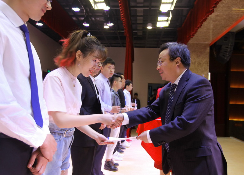 校党委书记、校友会会长刘陈教授给2018届研究生校友联络员代表颁发聘书