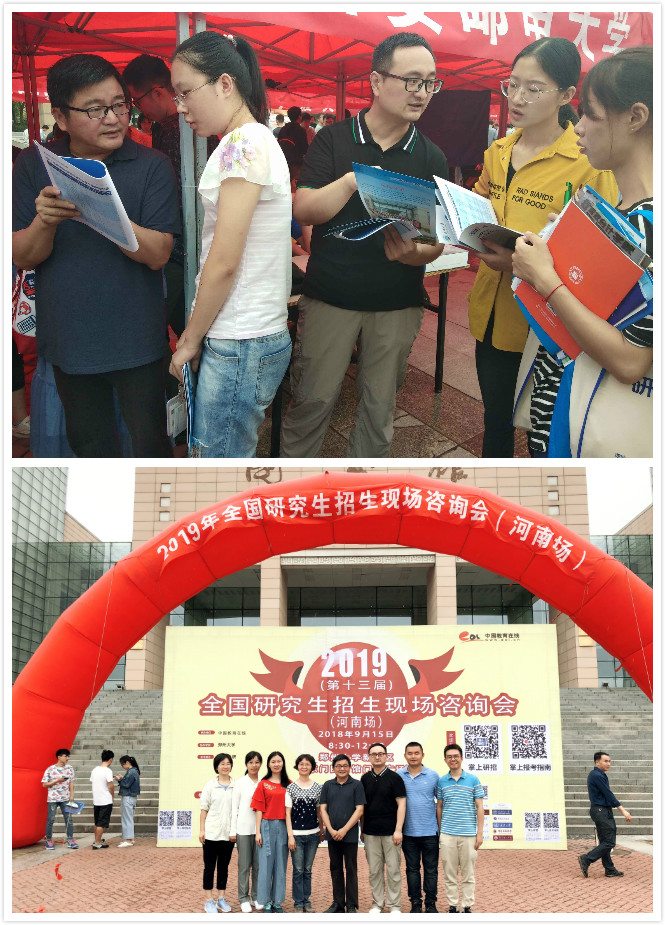 初秋的郑州,天气已经微凉,但是招生咨询会现场气氛却非常热烈,我校的展位前后一直围满了考生。各学院负责研究生招生的领导和老师们对考生们关注的具体问题,如各专业报录比、学费奖助政策、推免政策、师资力量、就业前景等问题进行了详细介绍。通过这种面对面的沟通方式,让考生对我校的研究生招生政策有一个更深入的了解。
