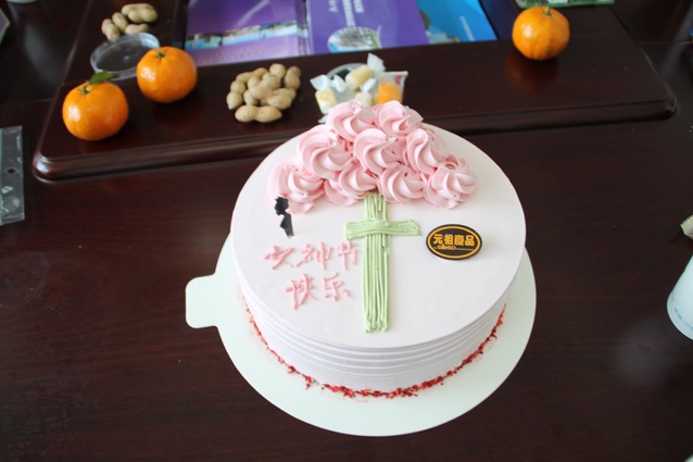 李飞副院长向三位退休女教师献花,大家一起分享老师们自带的蛋糕和各种茶点,相互留影,共叙友情,共同欢庆“三八”国际妇女节。