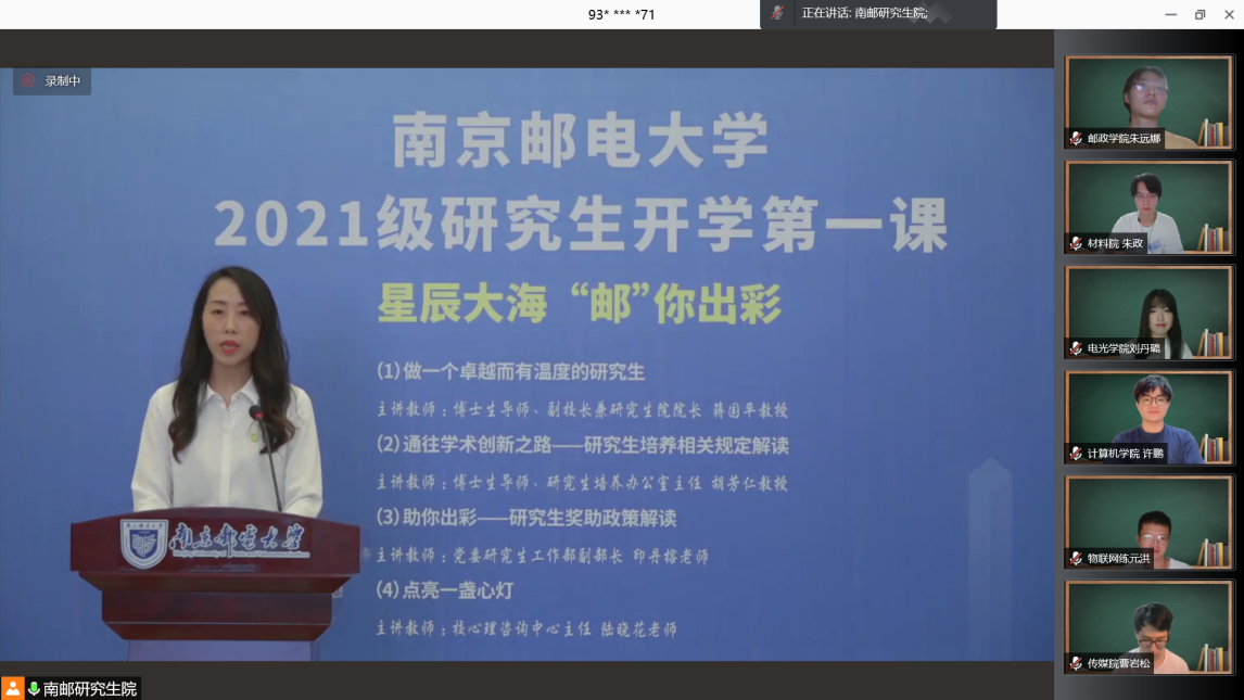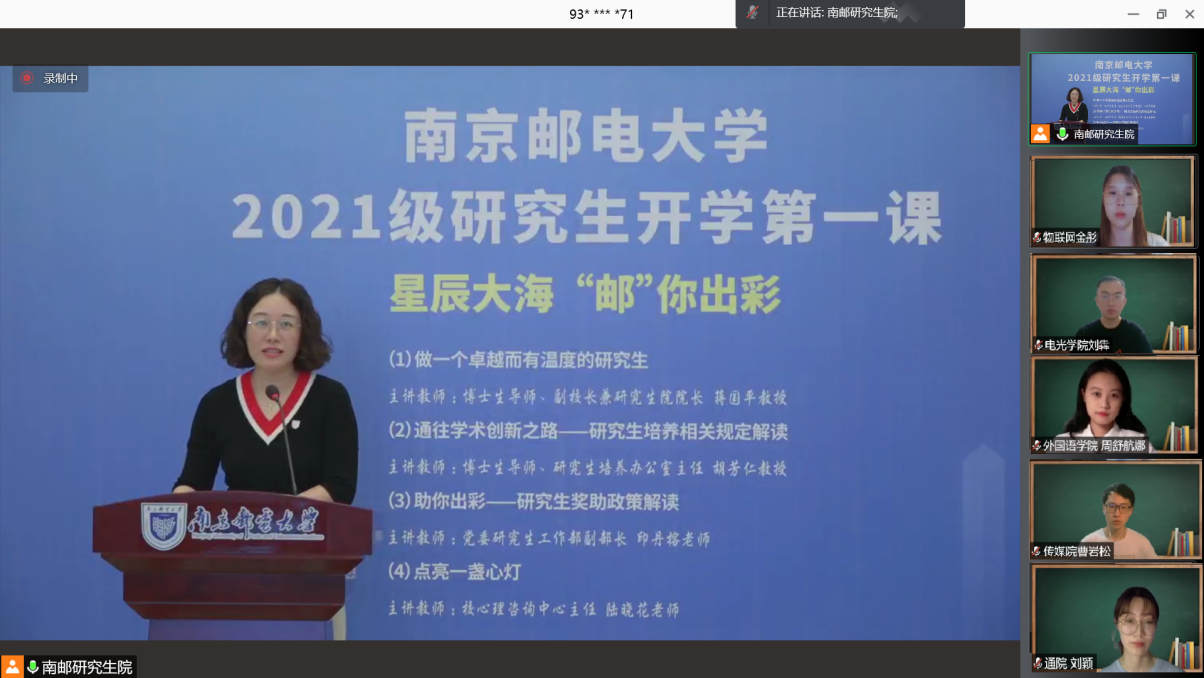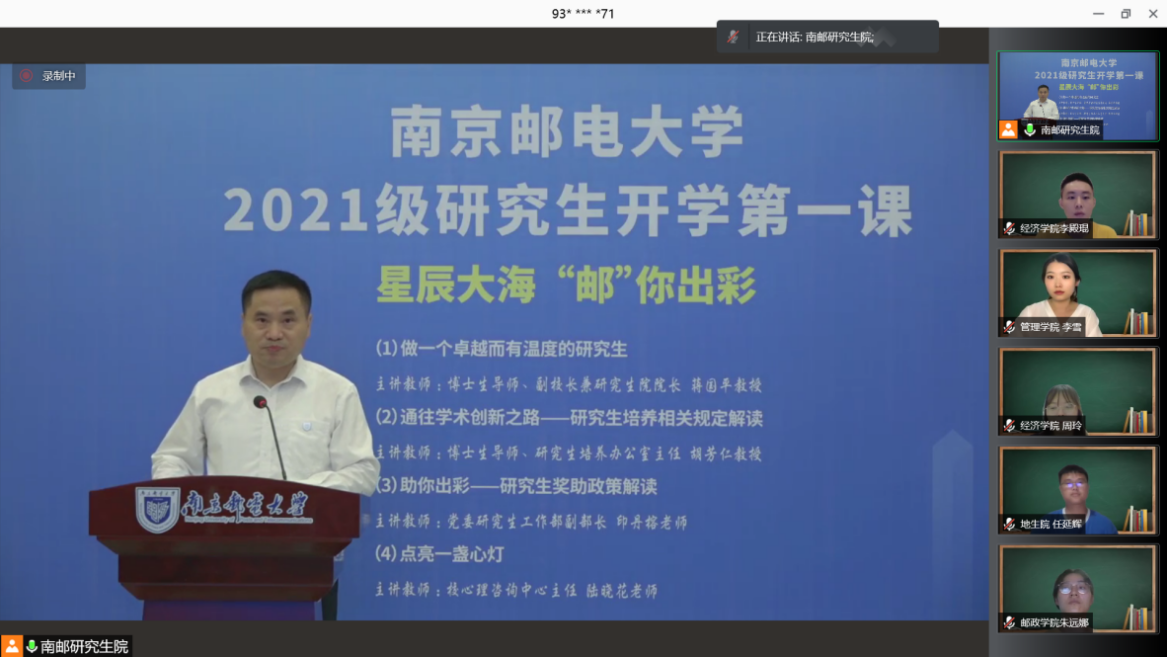 9月12日,我校组织近2800名2021级研究生新生同上开学第一课,今年的开学第一课以《星辰大海 “邮”你出彩》为主题,分四个专题,以线上方式进行。
