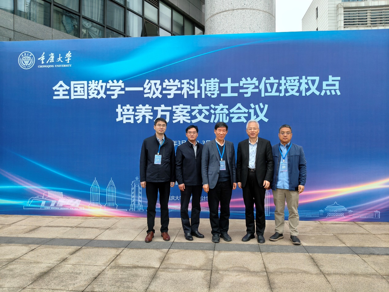 近日,由国务院学位委员会第八届学科评议组(数学组)主办、重庆大学数学与统计学院承办的全国数学一级学科博士学位授权点培养方案交流会在重庆大学虎溪校区召开,来自全国100余所高校的200余位专家学者参会。本次会议是全国数学一级学科博士学位授权点培养方案的第一次交流会,主要围绕数学一级学科博士学位培养方案进行研讨。我校理学院党委书记李永涛,数学学科负责人唐加山,副院长王正新,数学学科导师代表邵长国参会交流。